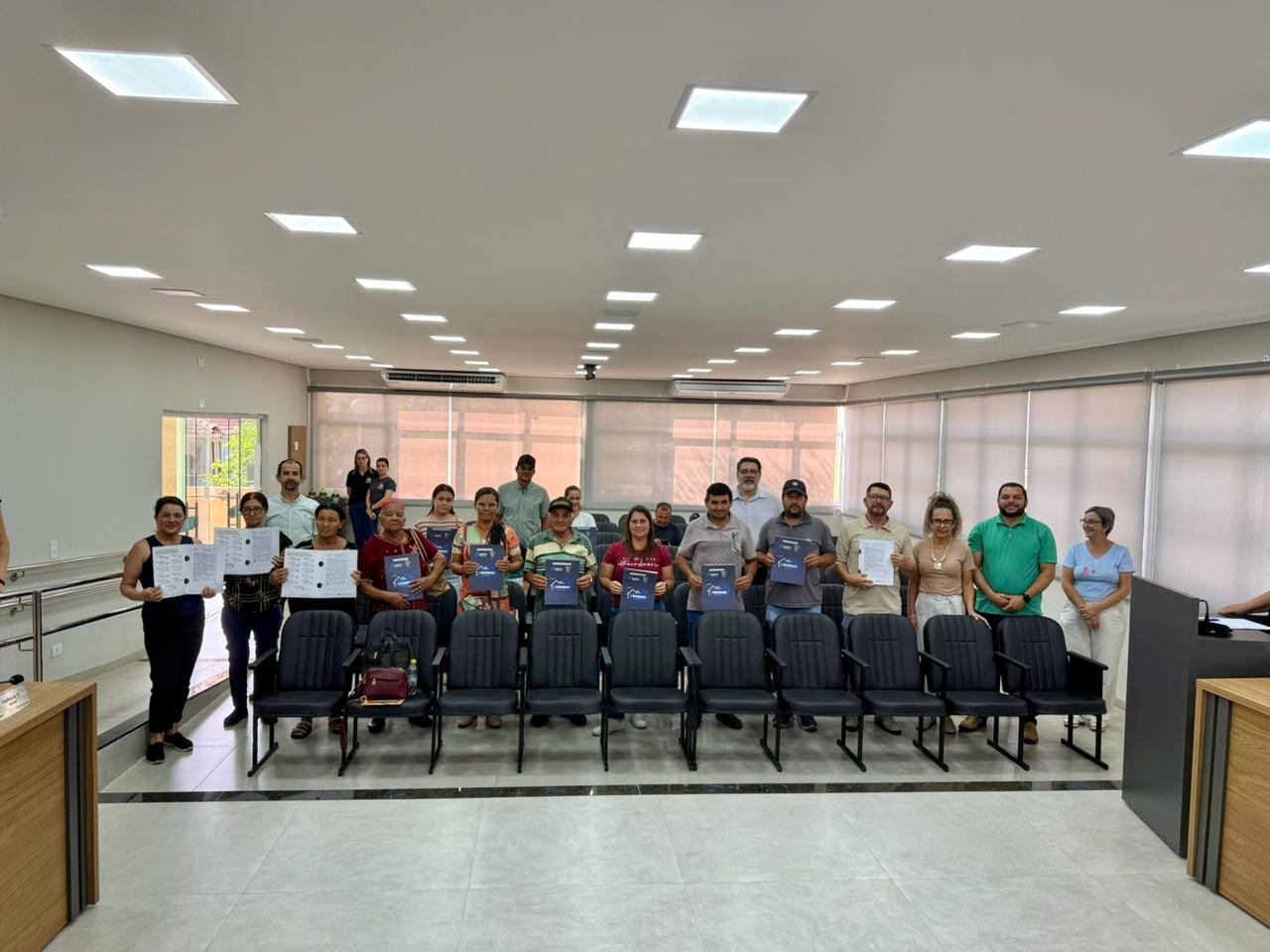A cerimônia de entrega dos registros imobiliários aconteceu às 15h, na Câmara Municipal de Vereadores, e reuniu os novos proprietários e seus familiares. Participaram do ato a vice-prefeita Lucinete Silva, o presidente do Legislativo André de Souza (Dedé - MDB), o secretário de Administração Fábio Caparroz, a procuradora jurídica do município Fátima Pegoraro, o vereador Fabrício de Sá (PSD) e a responsável na prefeitura pela parte burocrática, Ester Pereira. O prefeito Carlos Caxão (PSD), que retornava de agenda em Brasília, não pôde estar presente.