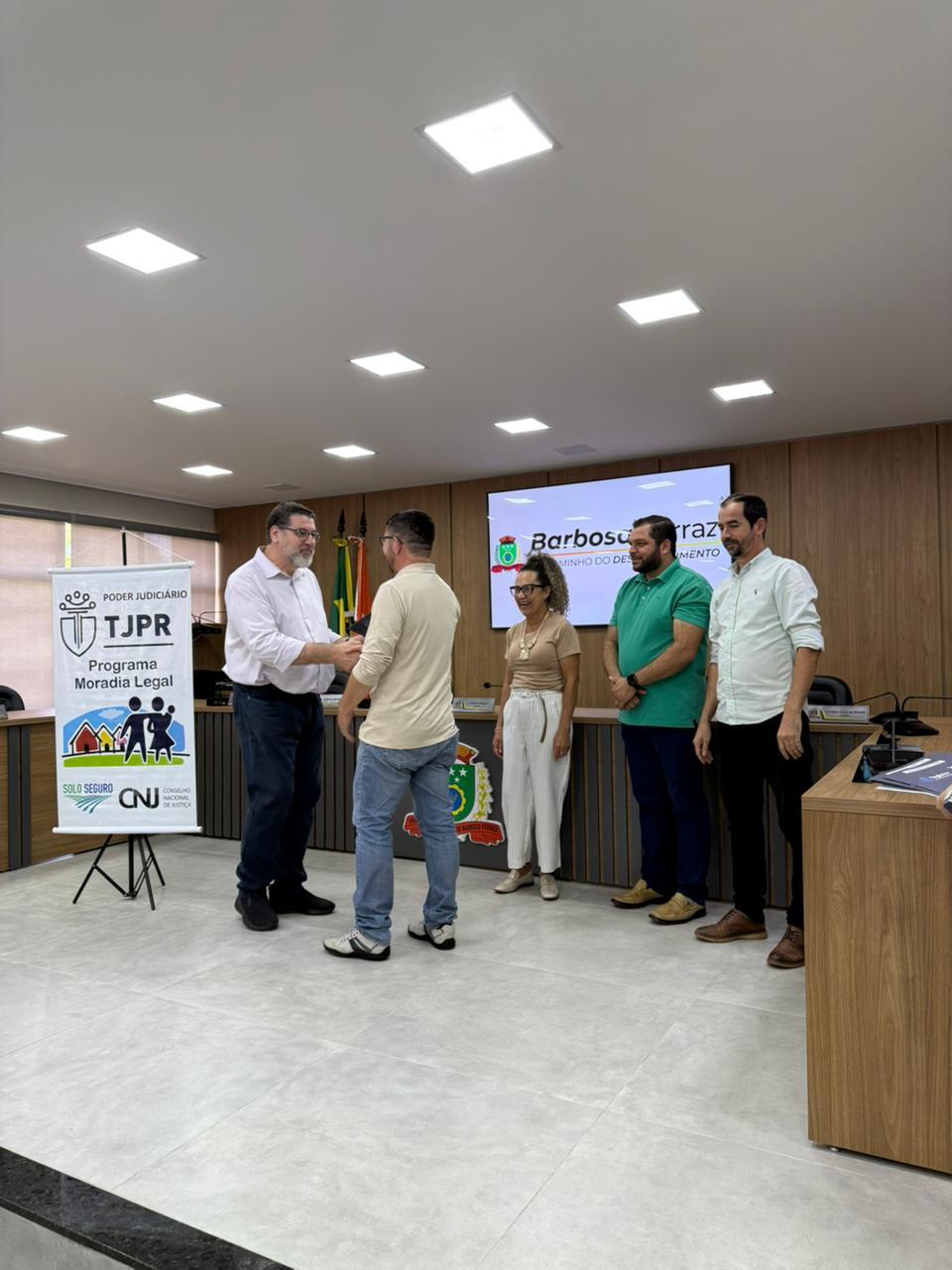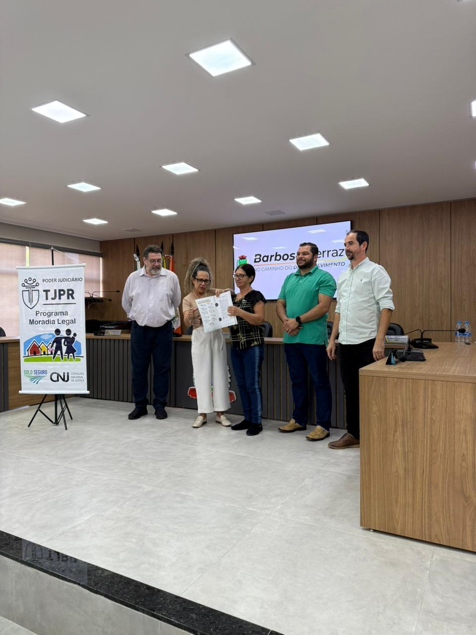 Nesta quinta-feira (23), um total de 13 famílias de Barbosa Ferraz receberam oficialmente os títulos de propriedade dos imóveis onde residem. Foram contempladas 8 famílias do distrito de Paraíso do Sul e 5 famílias da Vila Nova.