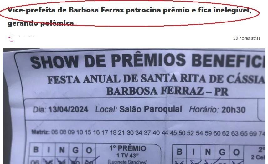 Mas o ponto principal da publicação foi dar destaque em uma informação equivocada de que a vice-prefeita Lucinete estaria inelegível, por ter seu nome em uma cartela de bingo, junto com outros patrocinadores do bingo em favor do Santuário. A legislação fala que para se configurar essa hipótese é necessário o pedido explícito de votos, ou de forma velada, mas o entendimento ainda será da justiça eleitoral para casos assim.