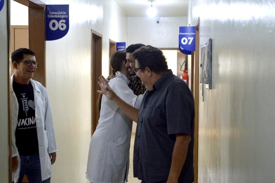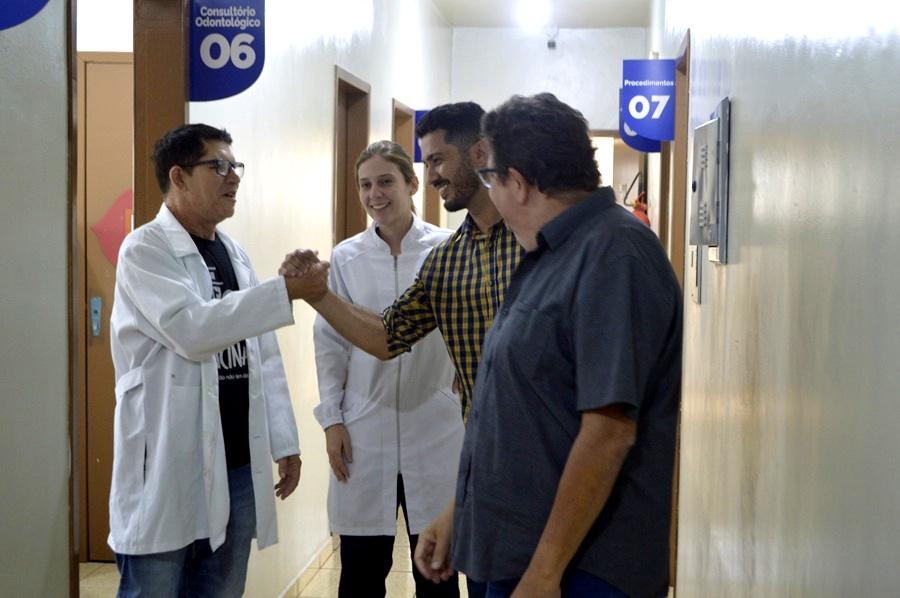 Ao lado do secretário municipal de Saúde, Leandro Mello, o prefeito Carlos Caxão esteve na manhã desta quinta-feira (23) na Unidade Básica de Saúde Santa Rita, na Vila do Roque, onde oficializou o início dos atendimentos da nova clínica odontológica voltada aos moradores do bairro.