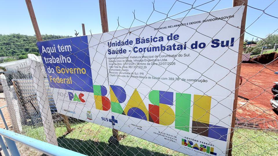 A Prefeitura de Corumbataí do Sul começou a construir uma Unidade Básica de Saúde (UBS) anexa à unidade de Saúde da Família. O investimento é de R$ 1.551.522,29, com 389,78 m² de área construída, viabilizado pelo Novo PAC/Ministério da Saúde do governo federal, com contrapartida municipal e apoio do deputado federal Zeca Dirceu.