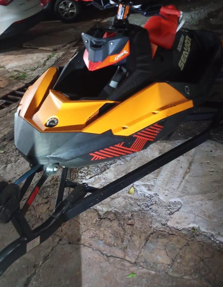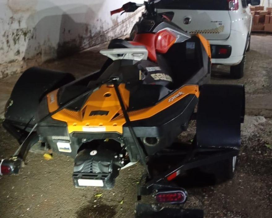 No fim da tarde de ontem, quinta-feira (17/10), por volta das 18h15, equipe da Polícia Militar do destacamento de Engenheiro Beltrão abordou, em Ivailândia, no município de Engenheiro Beltrão, um veículo em alta velocidade que transportava uma moto aquática (jet ski) em carretinha sem placa pela PR-317.