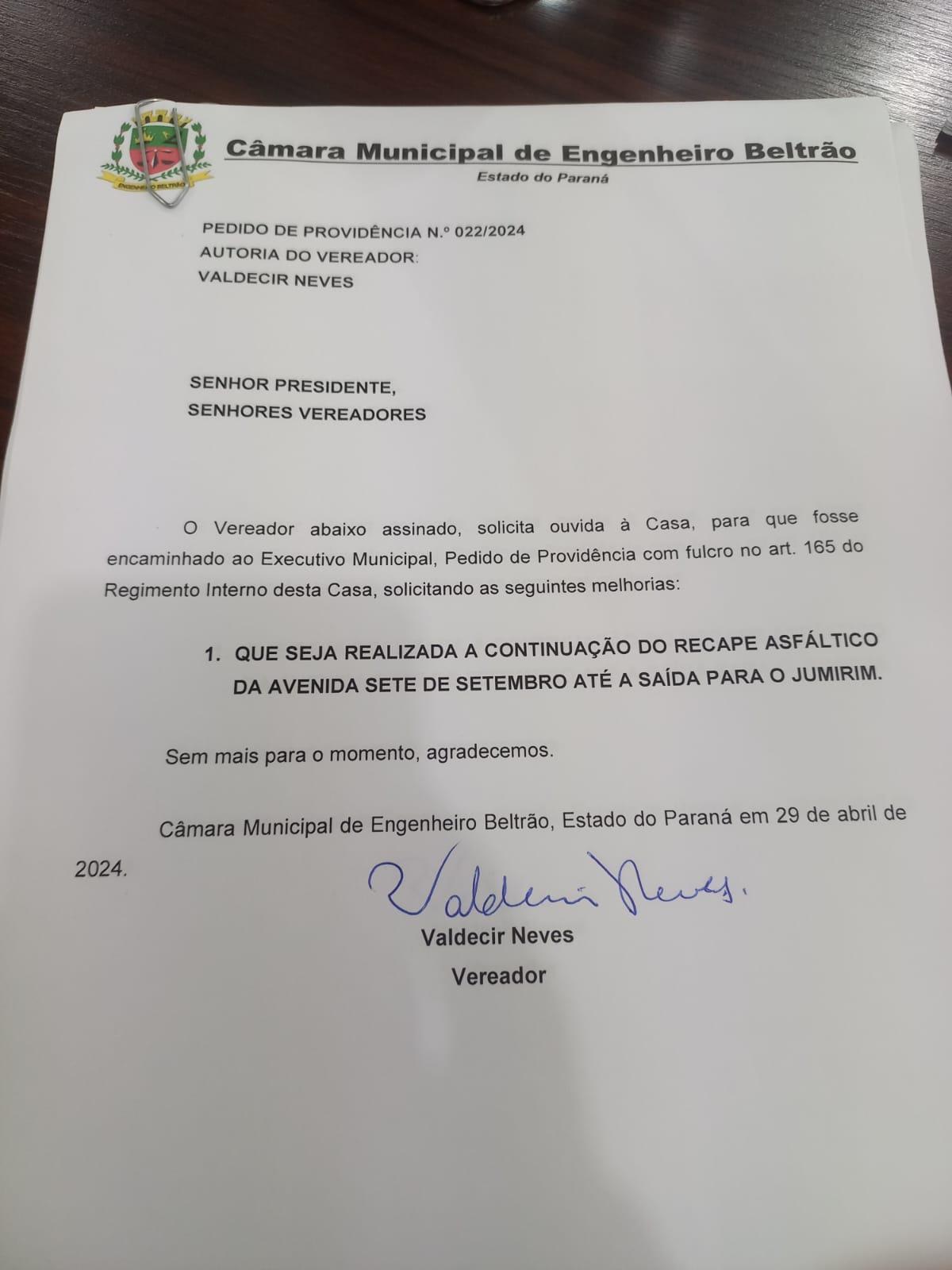 Os vereadores têm colaborado de perto com o prefeito Garbim desde o início de seu mandato, buscando antecipar obras em áreas que necessitavam de reparos urgentes. Um exemplo dessas ações é o vereador Valdecir do Busão, que em abril e maio deste ano protocolou requerimentos solicitando providências para a Avenida Sete de Setembro até a saída para a comunidade Jumirim e na Rua Mendes Camargo, próximo ao Salão da Melhor Idade. Nos documentos, Valdecir pediu que os trechos fossem recapeados.