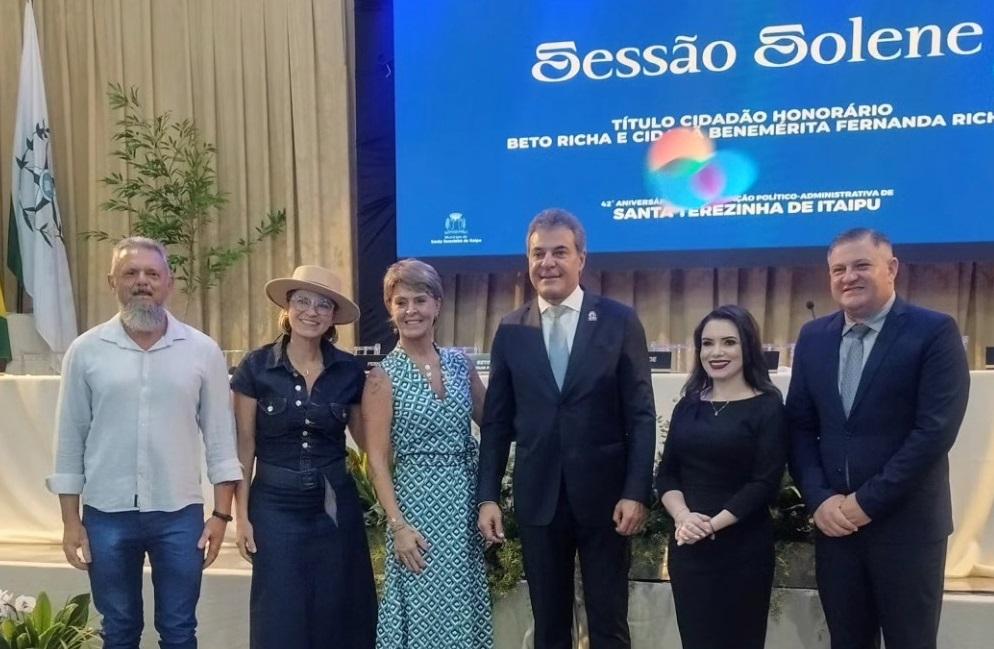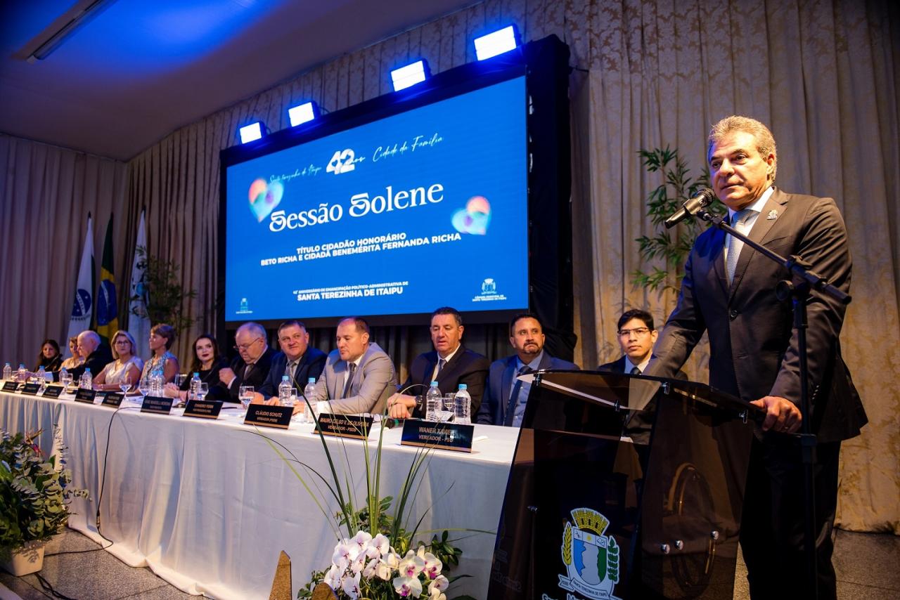 O evento aconteceu no Centro Integrado de Apoio à Melhor Idade (CIAMI) e contou com a presença de diversas autoridades, incluindo lideranças políticas de várias regiões do estado. Durante a sessão solene, Beto Richa foi agraciado com o título de Cidadão Honorário e Fernanda Richa recebeu o título de Cidadã Benemérita de Santa Terezinha de Itaipu.
