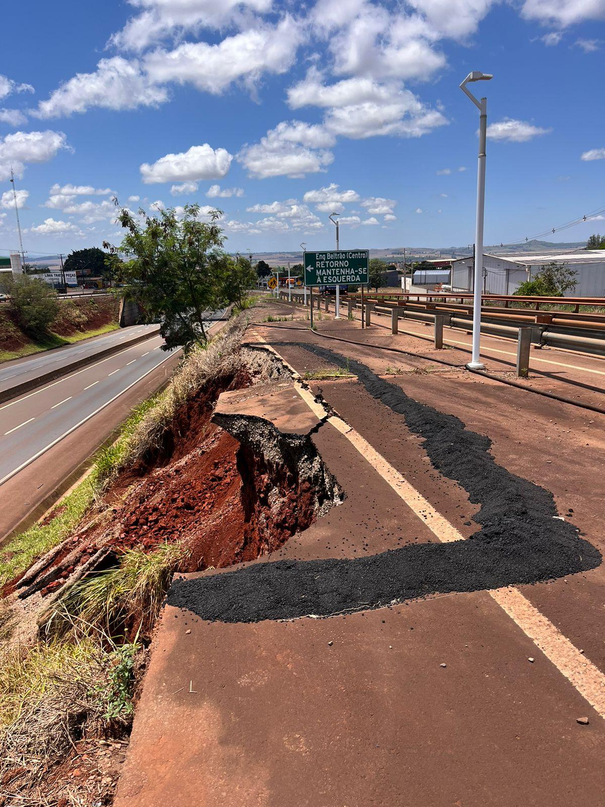 A prefeitura notificou o DER em fevereiro e setembro deste ano sobre a urgência de intervenção, mas não houve ações até o momento. O prefeito Júnior Garbim gravou um vídeo e explicou que o problema é de competência do Estado, via DER, e reforça o pedido por obras imediatas: “Há risco de desabamento e de perda de parte da pista”.