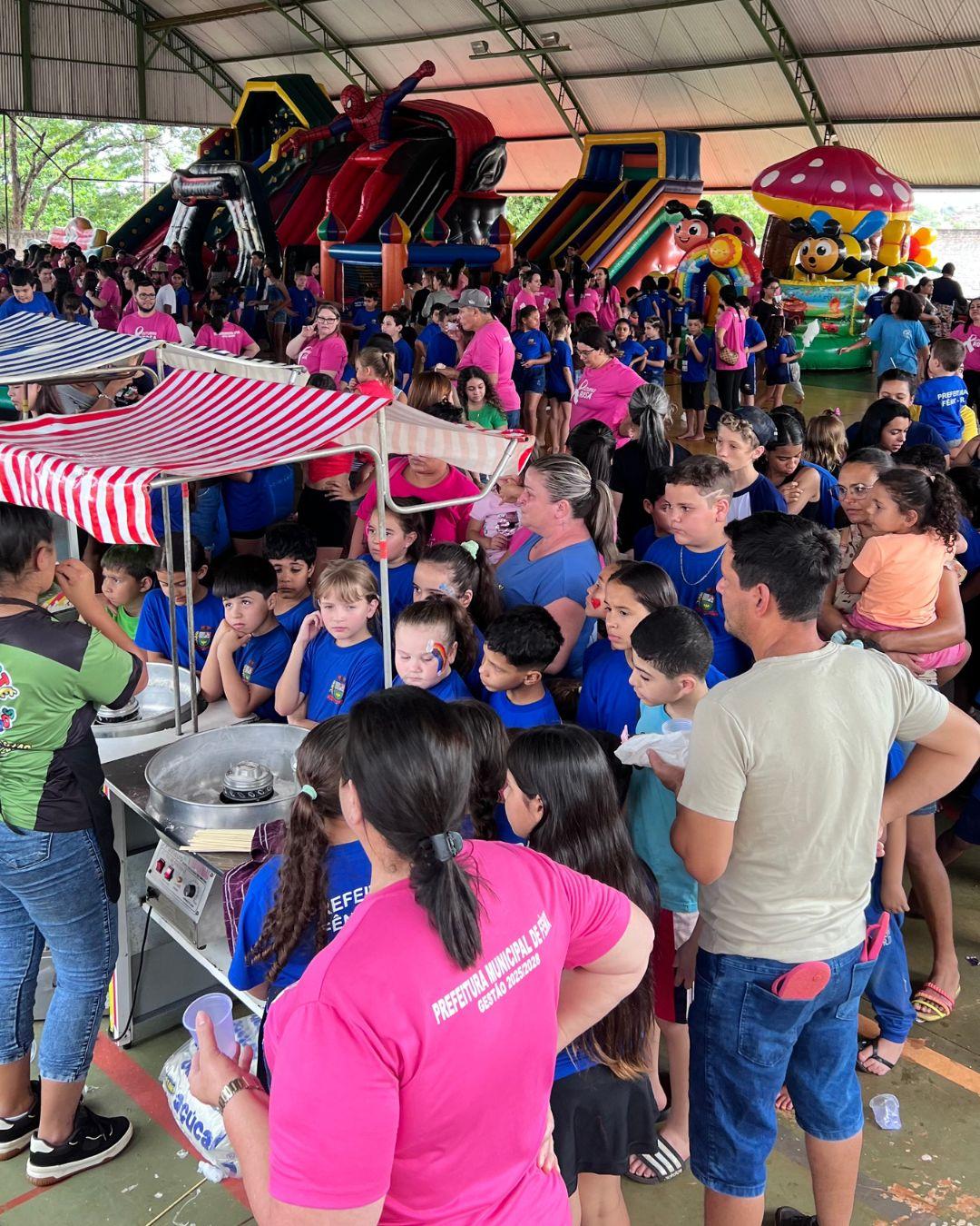 A Prefeitura de Fênix realizou, nesta semana, na última quinta-feira (09), uma festa em comemoração ao Dia das Crianças, reunindo centenas de crianças na quadra do CMEI São Vicente. A ação foi promovida pela Secretaria de Educação, Cultura e Esporte, com apoio da Assistência Social e demais setores da administração.