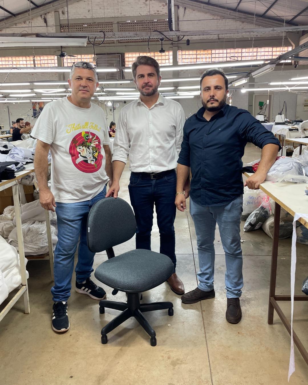 O prefeito Leonardo Romero e o vice-prefeito Lucas Almeida entregaram novas cadeiras ergonômicas para duas fábricas de costura de Quinta do Sol. O objetivo da ação visa melhorar o conforto e a qualidade de trabalho dos colaboradores.