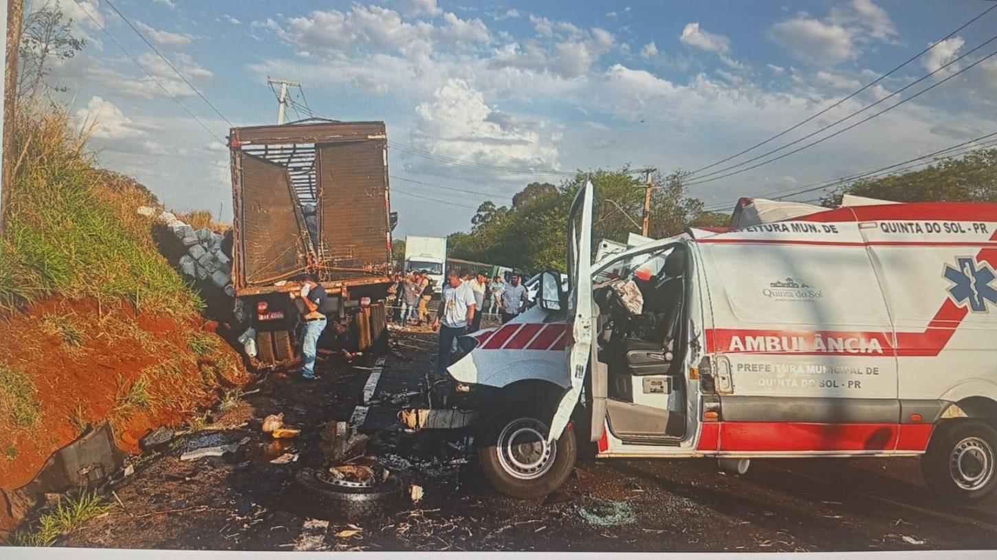 O motorista da ambulância de Quinta do Sol foi levado para um hospital da região. O motorista do caminhão não se feriu e recusou atendimento médico.