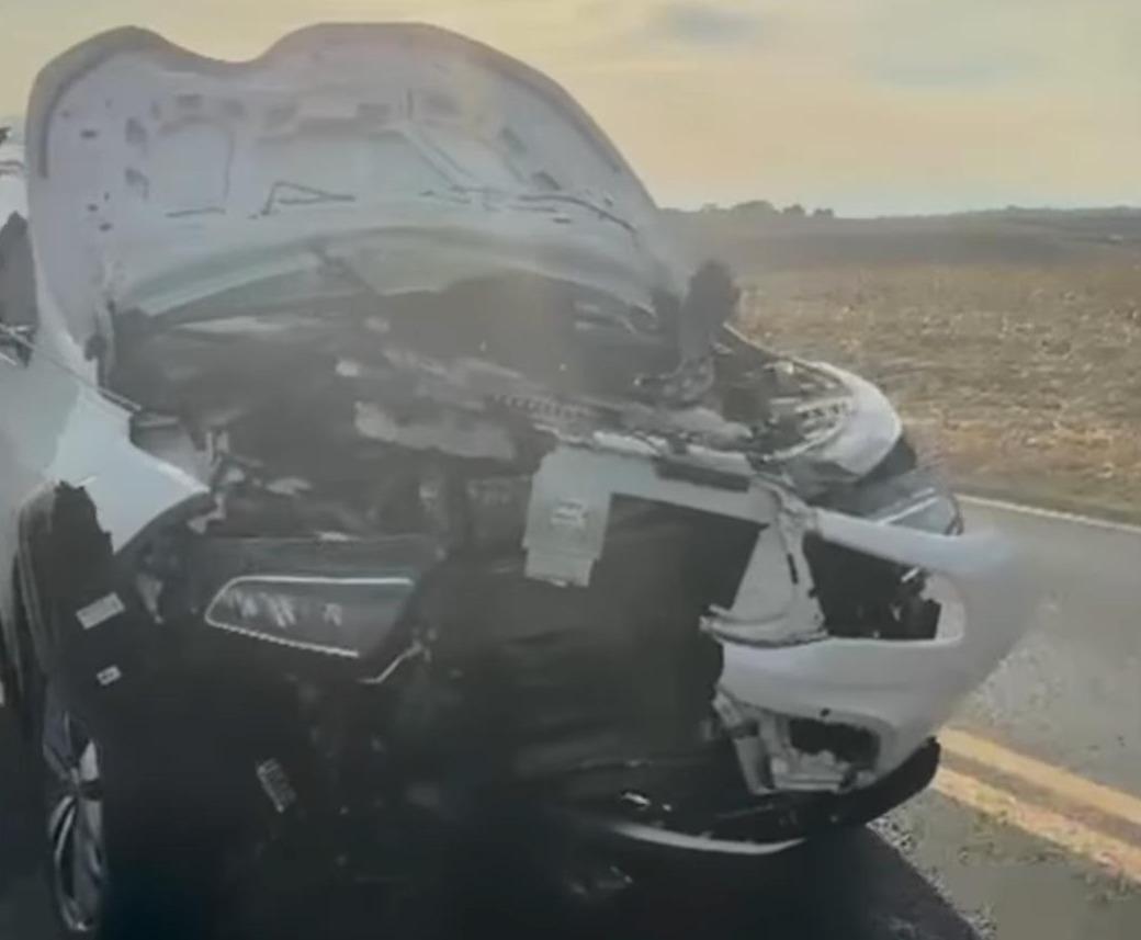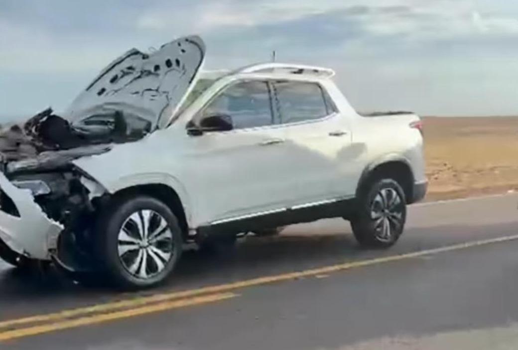Na manhã desta sexta-feira (17), uma roda que se desprendeu de um caminhão e atingiu uma Fiat Toro na PR-082, entre São João do Ivaí e Lunardelli, próximo à antiga Fazenda São Francisco.